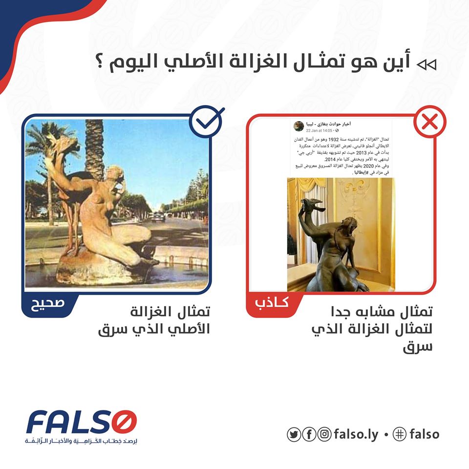 تتناقل وسائل التواصل الإجتماعي الليبية خبر عن وجود تمثال The two gazelles أو تمثال الغزالتين (ما يعرف في ليبيا بتمثال الغزالة) في أحد المتاحف الأوروبية.