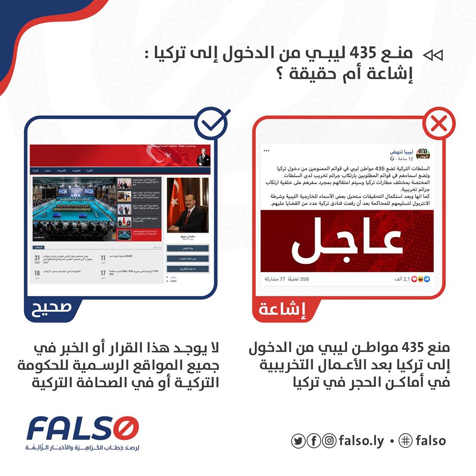 ومن بين ردود الفعل المصاحبة هو إنتشار خبر عن قرار للحكومة التركية بوضع 435 مواطن ليبي في قوائم الممنوعين من دخول الأراضي التركية. ❌❌