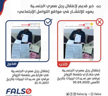 صور خبر قديم تعود للإنتشار في مواقع التواصل الإجتماعيM.alnajem1 مايو، 2020تناقلت صفحات التواصل الاجتماعي بتاريخ الأمس 30.04.2020 خبر القبض على رجل مصري الجنسية بتهمة الزواج العرفي من مواطنات ليبيات. جل ... المزيد