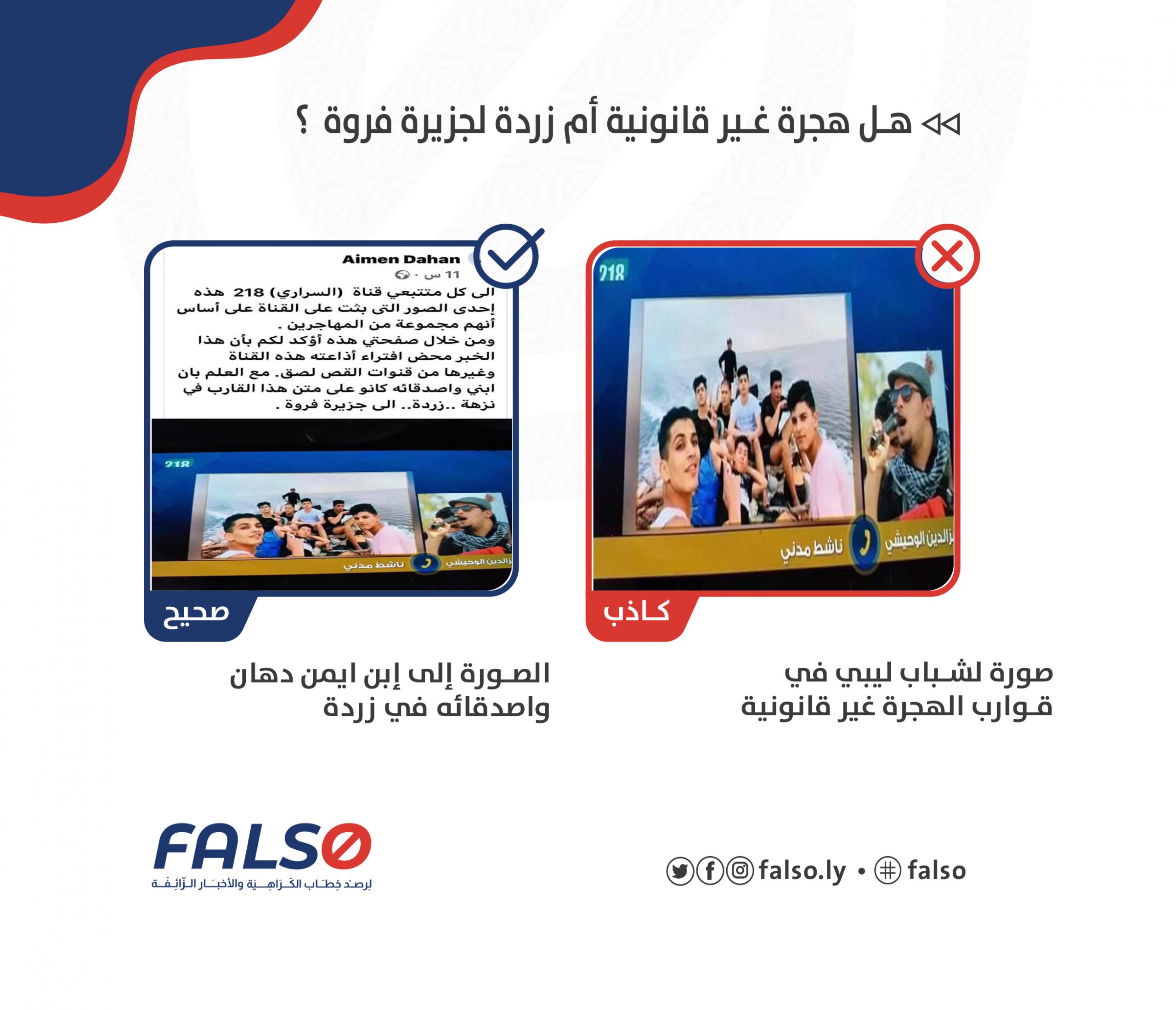 نشر والد احد الشباب من الذين كانوا بالقارب على صفحته الشخصية بأن ما نشر على قناة 218 بأنهم شباب متجهة لهجرة غير قانونية غير صحيح وان ابنه ومجموعة من أصدقائه كانوا على متن القارب في رحلة صيفية متجهين الى جزيرة فروة الواقعة بمنطقة زوارة ليبيا. ✅✅