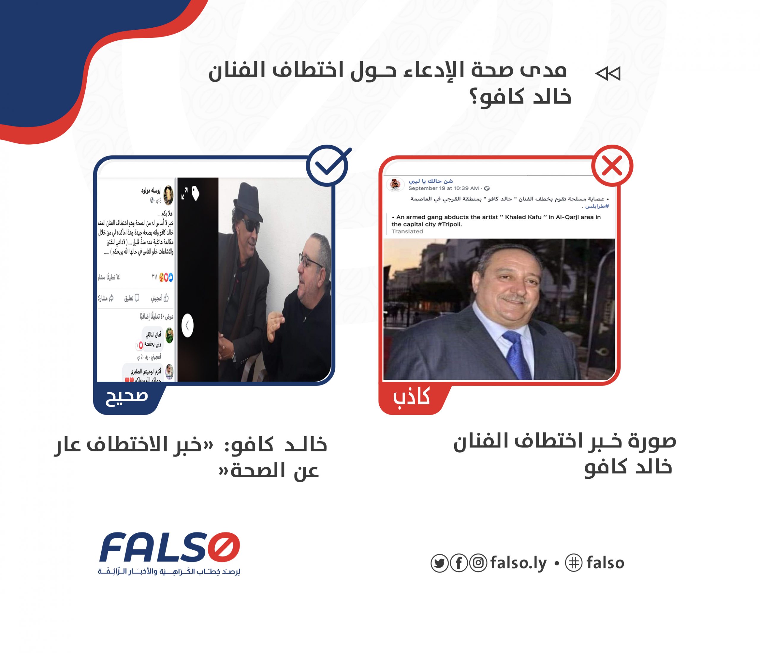 من خلال التحقق والبحث والتواصل مع السيد خالد كافو شخصيا، تم التأكد من ان الاخبار التي نشرت عارية عن الصحة وان لا وجود لها وهو بصحّة جيدة وفي منزله وبين اسرته.✅✅