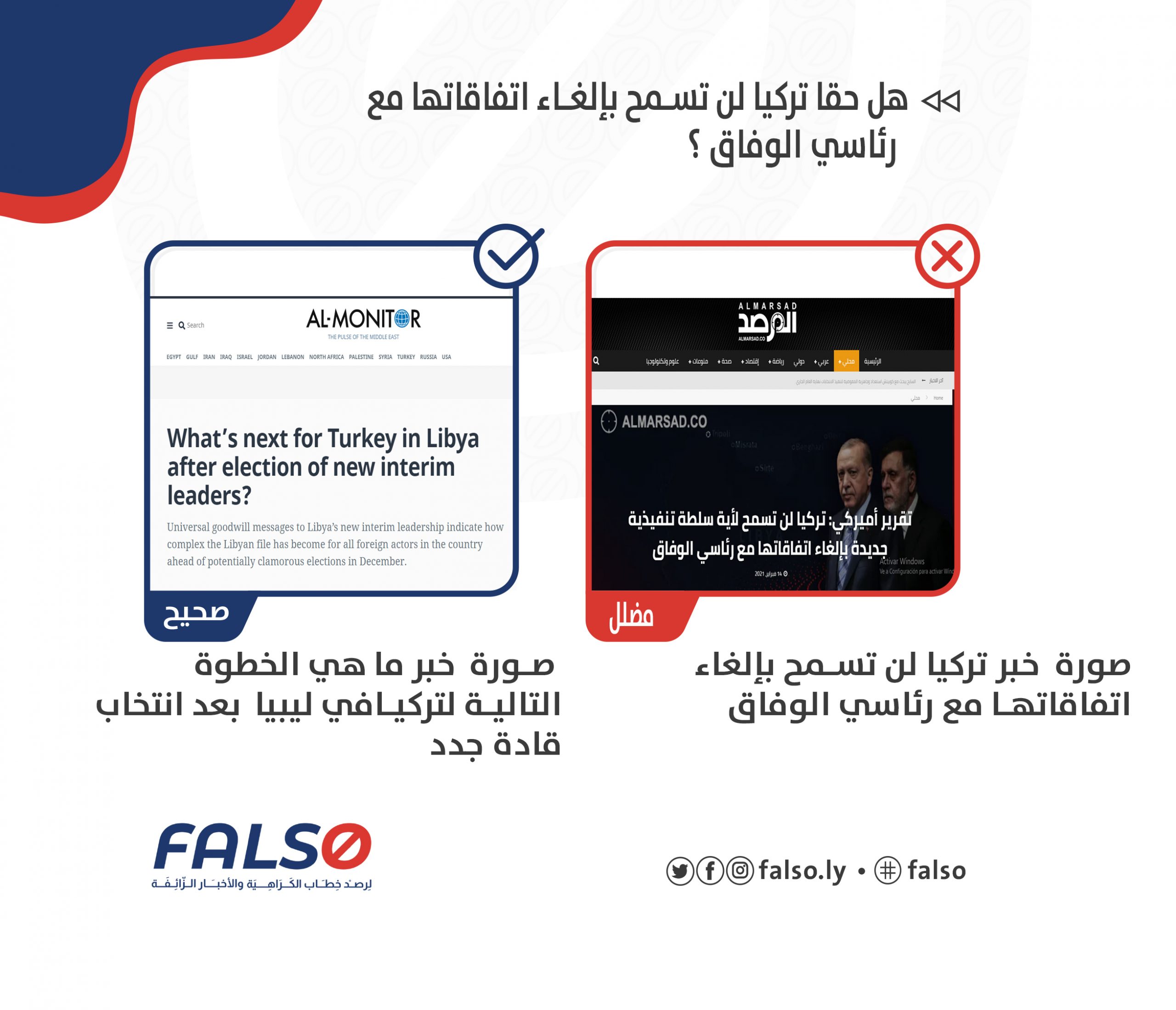 نشر عبر الموقع الرسمي لصحيفة المرصد بتاريخ 14 فبراير  تقرير تحليلي مضلل نقلته ترجمةً عن تقرير أمريكي نشر عبر موقع “المونيتور”  مفاده أن تركيا لن تسمح لأية سلطة تنفيذية جديدة بإلغاء اتفاقياتها مع رئاسي الوفاق، وأضاف التقرير أن نجاح ليبيا سيعتمد على قبول القوى الخارجية المتدخلة في شؤونها، وعلى رأسها تركيا، وبين التقرير أن أنقرة ترفض أي سلطة تنفيذية جديدة في ليبيا إذا ما شعرت أن هذه السلطة قد تلغي مذكرتها الأمنية وصفقاتها البحرية.❌❌