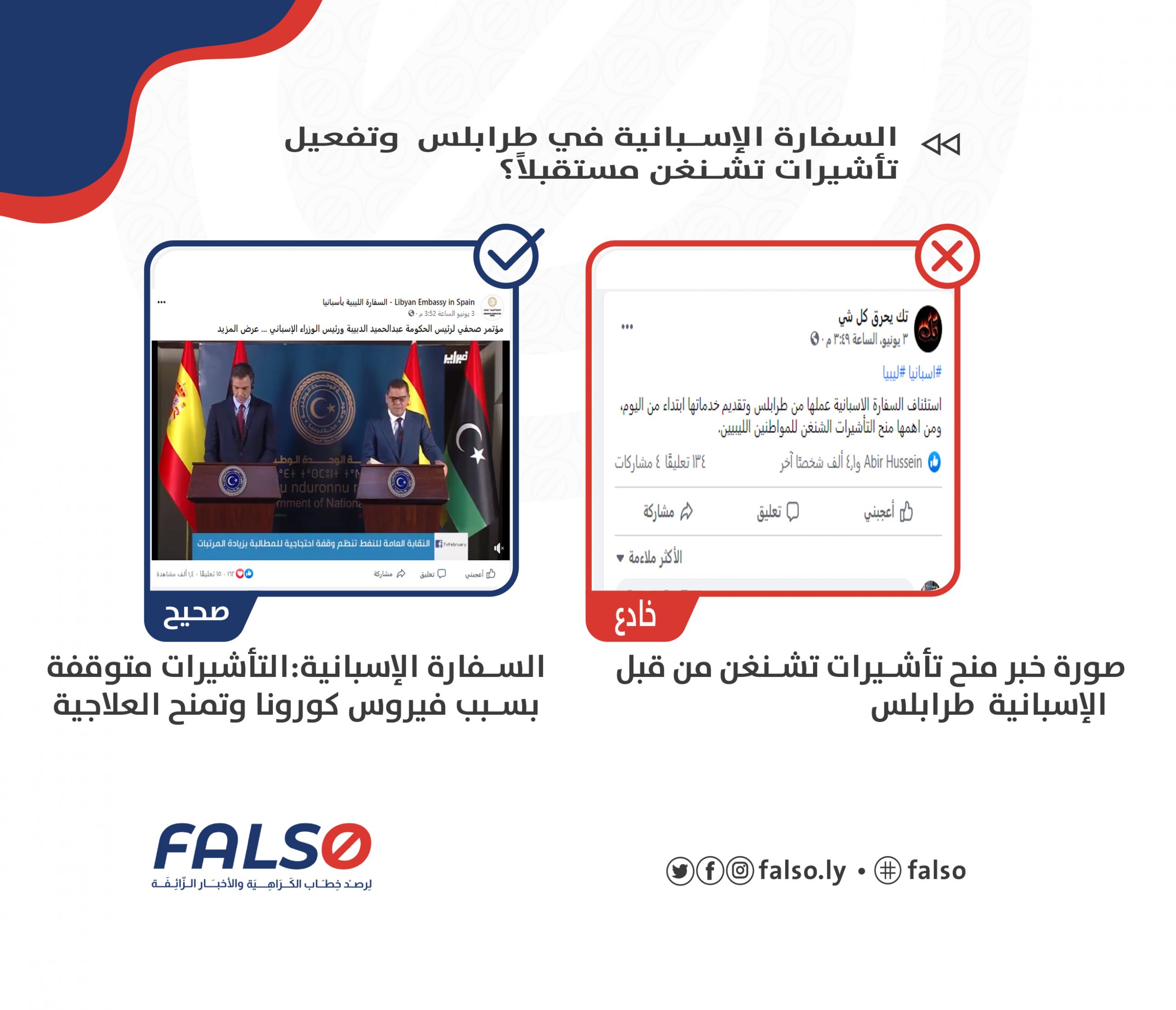 الخبر الذي نشر عبر تك يحرق كل شيء على الفيس بوك بتاريخ 03 يونيو2021 خادع لان السفارة لم تمنح التأشيرة لعامة للمواطنين الليبيين بل بقبول الحالات الإنسانية وحالات العلاج، لذا تنصح منصة فالصو رواد مواقع التواصل الاجتماعي توخي الحذر والتبليغ عن مثل هذه الاخبار للتحقق من صحتها ✅✅.
