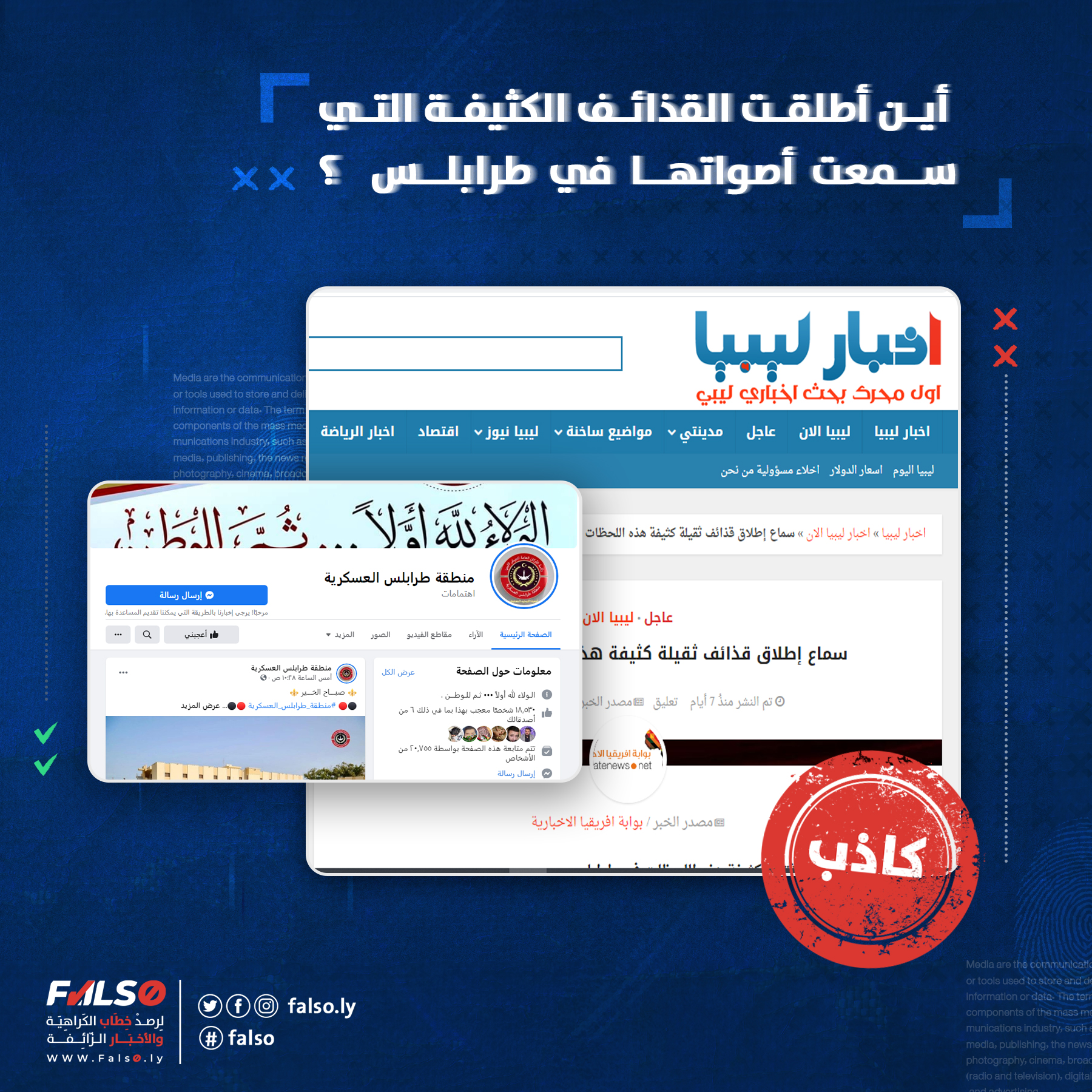 - أغلب الصفحات الرسمية لرئاسة الأركان للجيش الليبية والمنطقة العسكرية طرابلس تبين أنه لا تتوفر أي أخبار أو معلومات عن تفجير مخلفات حرب أو وجود أي نوع من استعمال السلاح الثقيل داخل طرابلس أو خارجها .