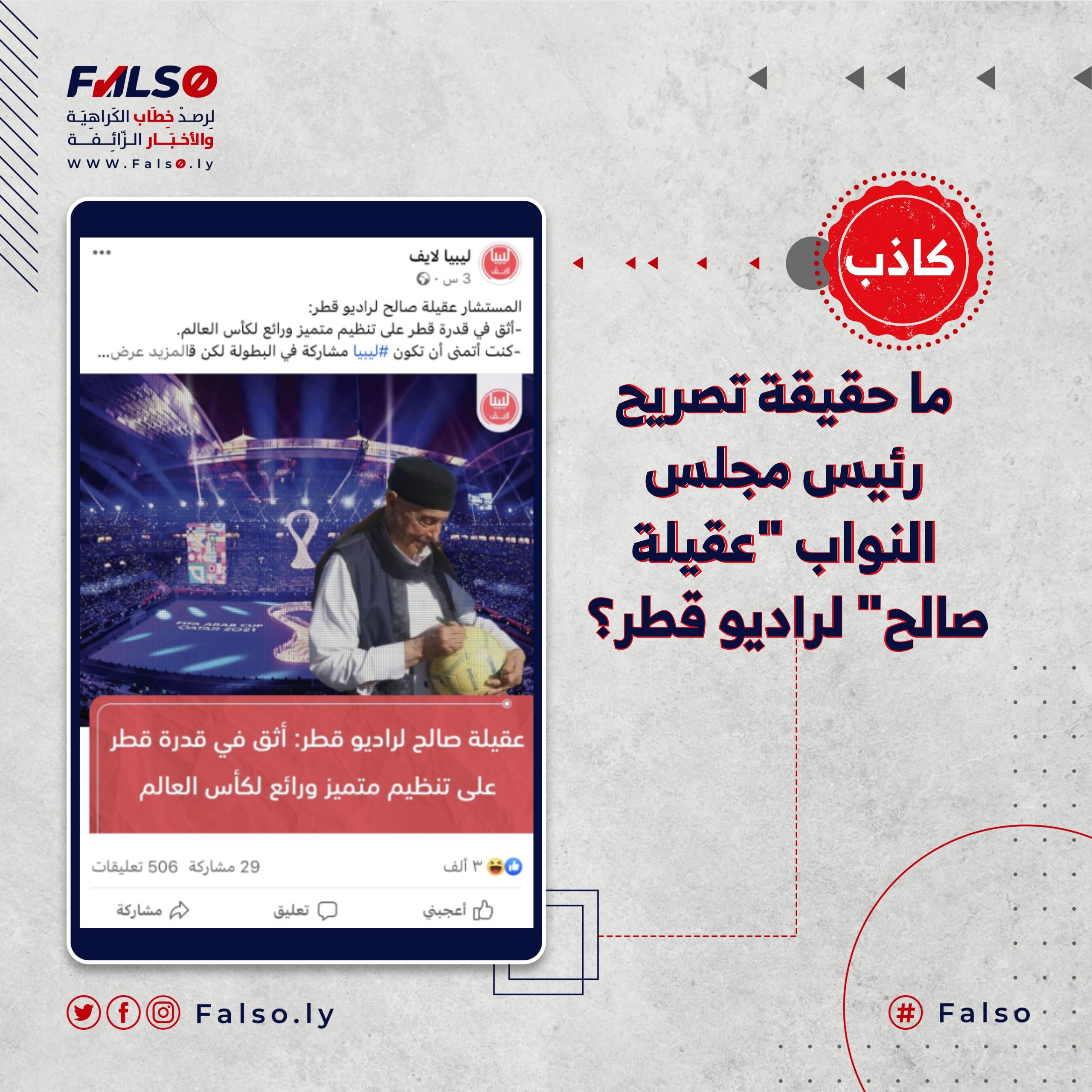 كما تواصل الفريق مع المكتب الإعلامي لرئيس مجلس النواب “عقيلة صالح” والذي نفى لمنصة فالصو صحة الادعاء .