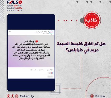 هل تم اغلاق كنيسة السيدة مريم في طرابلس؟ M.alnajem12 مارس، 2023تناقلت صفحات وسائل التواصل الاجتماعي أخبار مفادها إغلاق كنيسة السيدة مريم بالمدينة القديمة ومن أبرز الصفحات التي تداولت الإدعاء صفحة ... المزيد