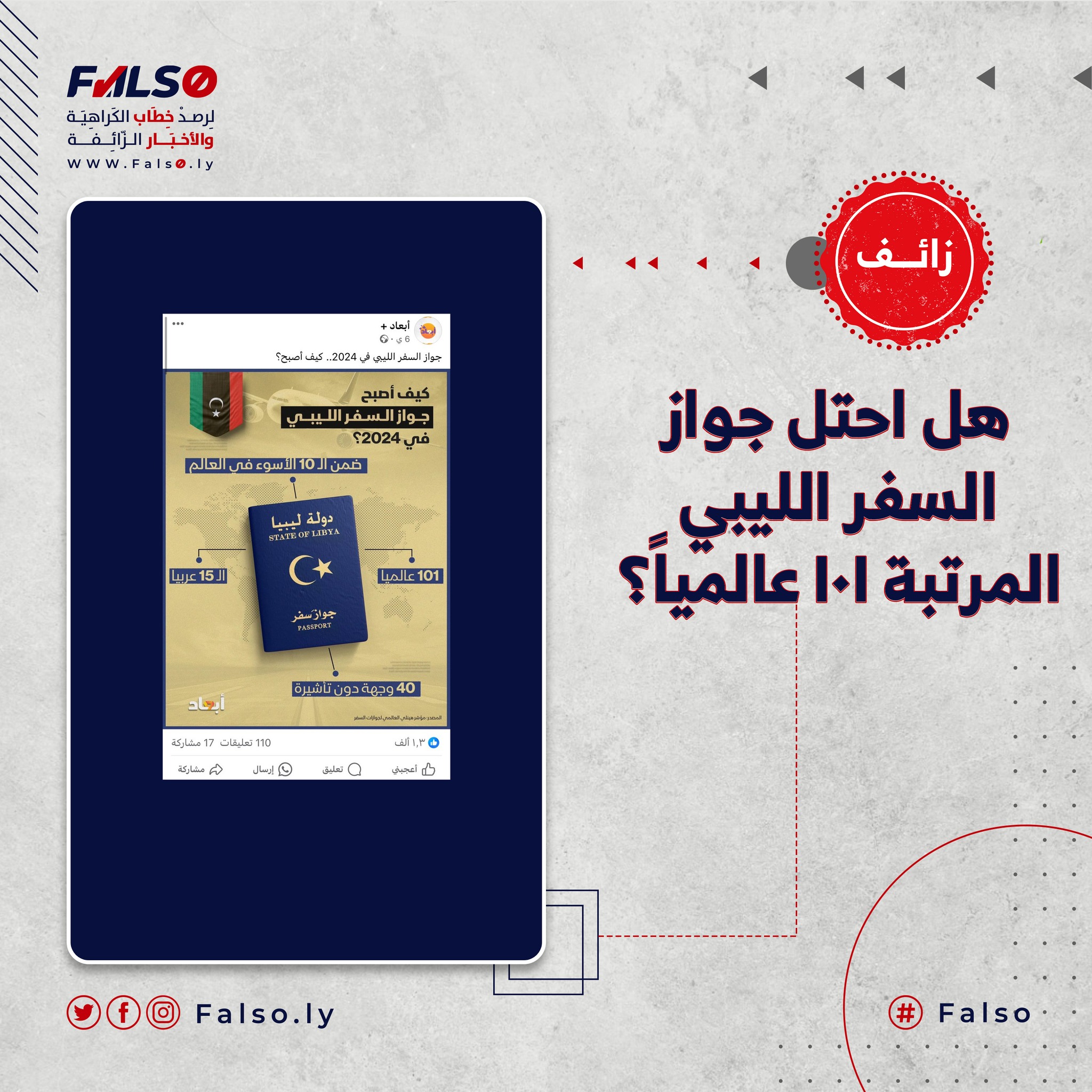 جواز السفر الليبي لم يتحصل على المرتبة 101 عالميًّا.