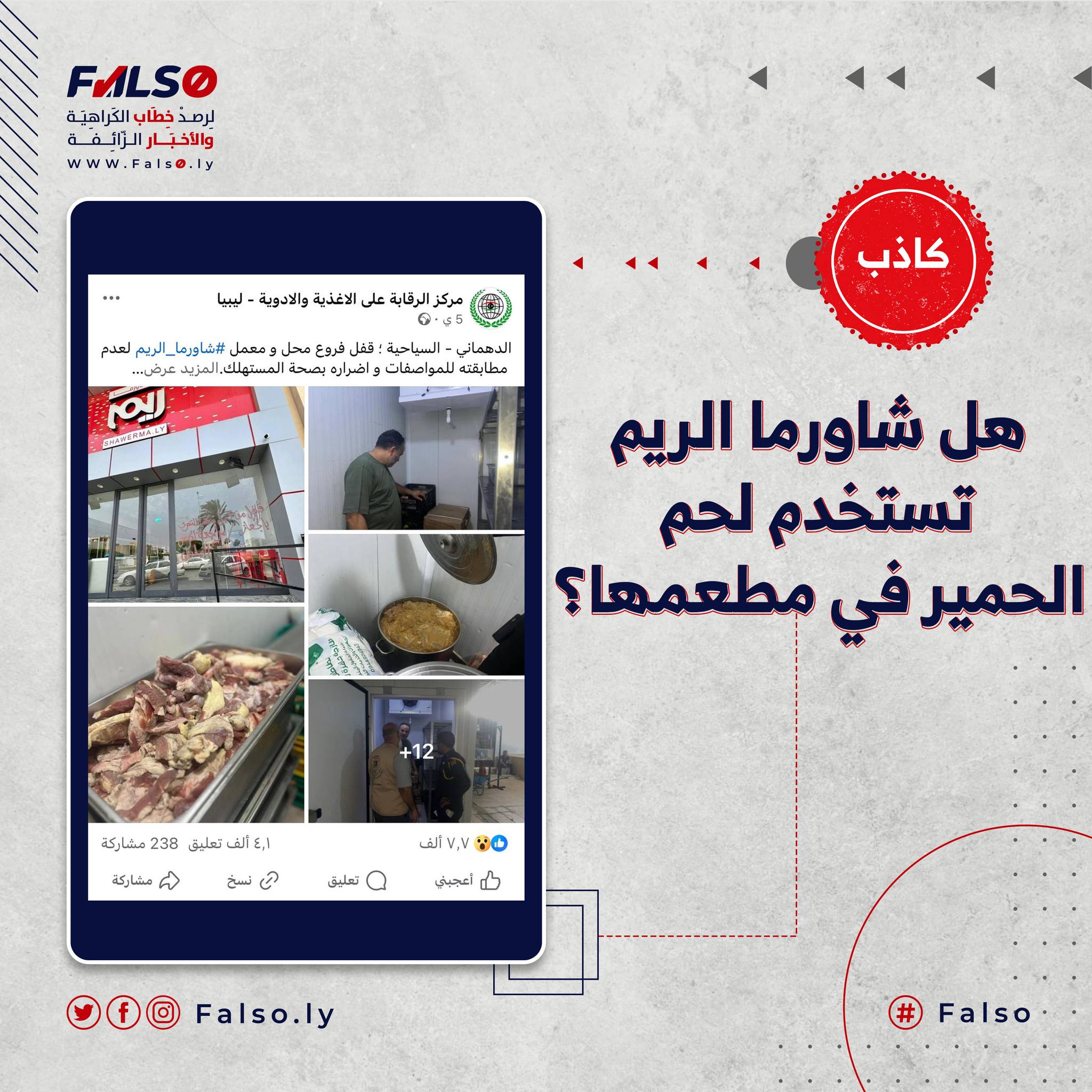 بعد الإعلان عن إغلاق مطعم شاورما الريم فرع حي الأندلس تم على أثرها إقفال فرع زاوية الدهماني أيضا، المطعم روج له من قبل الطهاة الليبيات ذات الشهرة الواسعة بمذاقه وجودته العالية في تقديم أطباقه، تداولت عدة صفحات وحسابات شخصية على موقع التواصل الاجتماعي ادعاء مفاده بأن مطعم الريم شاورما يستخدم لحم الحمير.