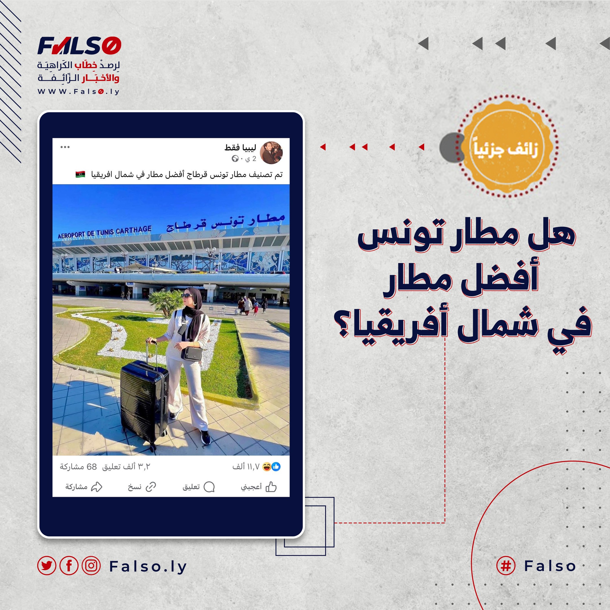 ادّعت عدة صفحات بموقع التواصل الاجتماعي فيسبوك، أن مطار قرطاج في تونس حصل على تصنيف أفضل مطار في شمال أفريقيا، بينما ادعى آخرون أن المطار نفسه حصل على تصنيف الأسوأ من بين 239 مطارًا حول العالم. وقد لاقى هذا الادعاء تداولًا واسعًا في العديد من الصفحات والمواقع الليبية والعربية.