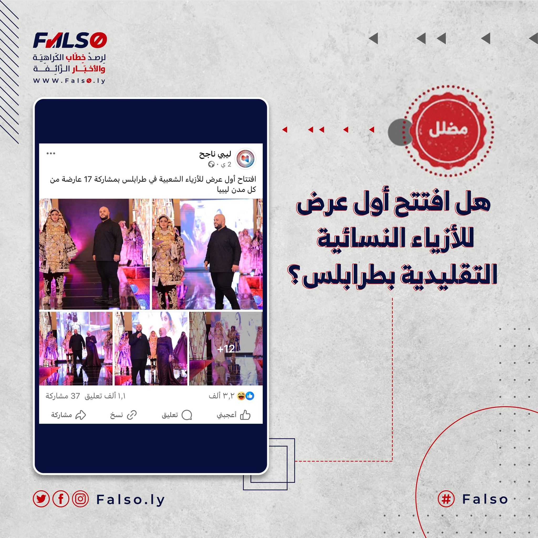 ادعت عدد من صفحات موقع التواصل الاجتماعي فيسبوك ادعاءً مفاده أن صورا لعرض الأزياء الليبية التقليدية هي أول عرض للأزياء التقليدية بمدينة طرابلس وبمشاركة 17 عارضة من كل مدن ليبيا.
