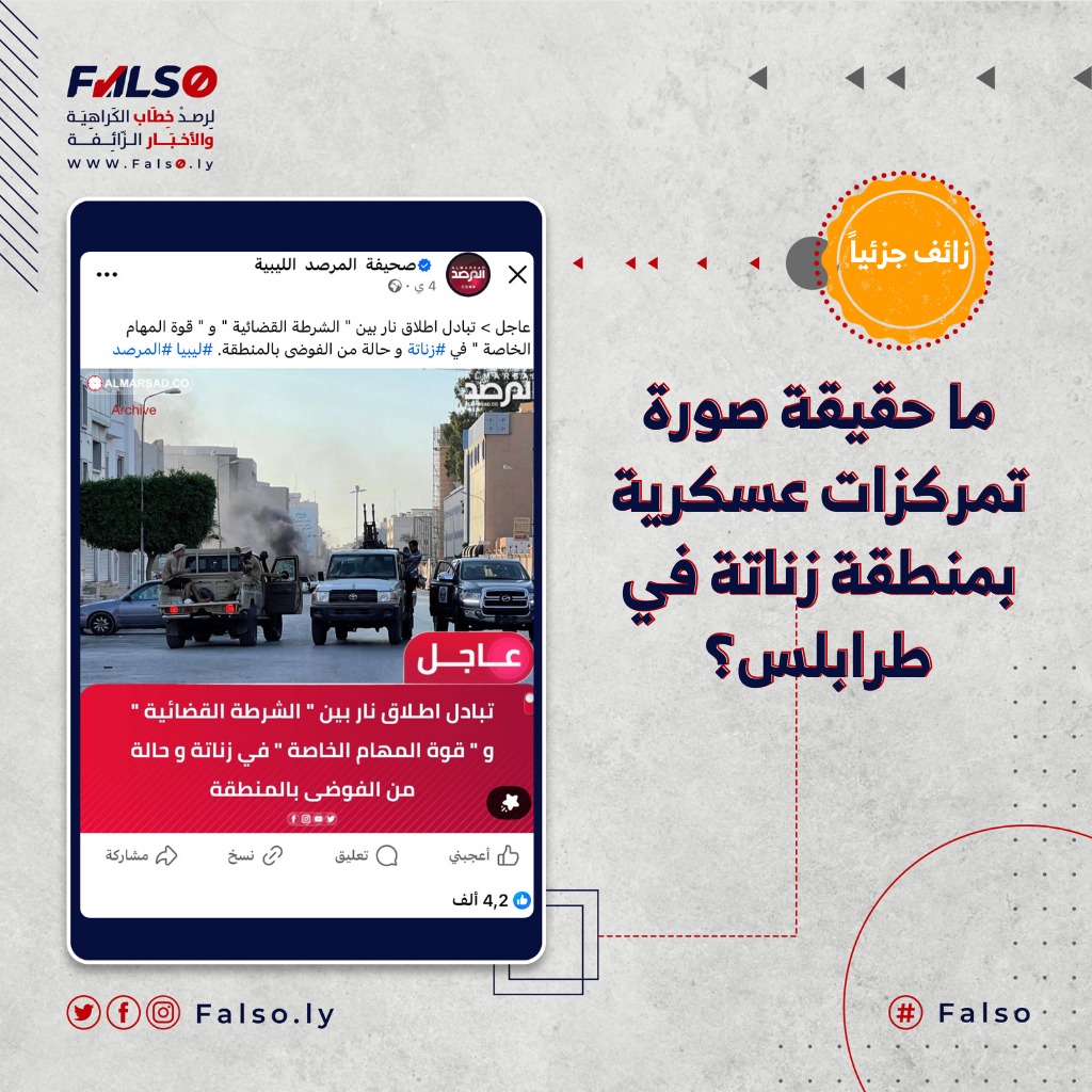 يُذكر أن تبادلاً لإطلاق النار حدث بمنطقة زناتة بين فصيلين مُسلحين، أثّر في حركة المرور والسير، وتسبب بذعر كبير بين المواطنين قبل أيام قليلة، فيما نشرت صفحات ومواقع إخبارية الخبر مرفقاً بصور قديمة، دون التنويه إنها صورة أرشيفية.