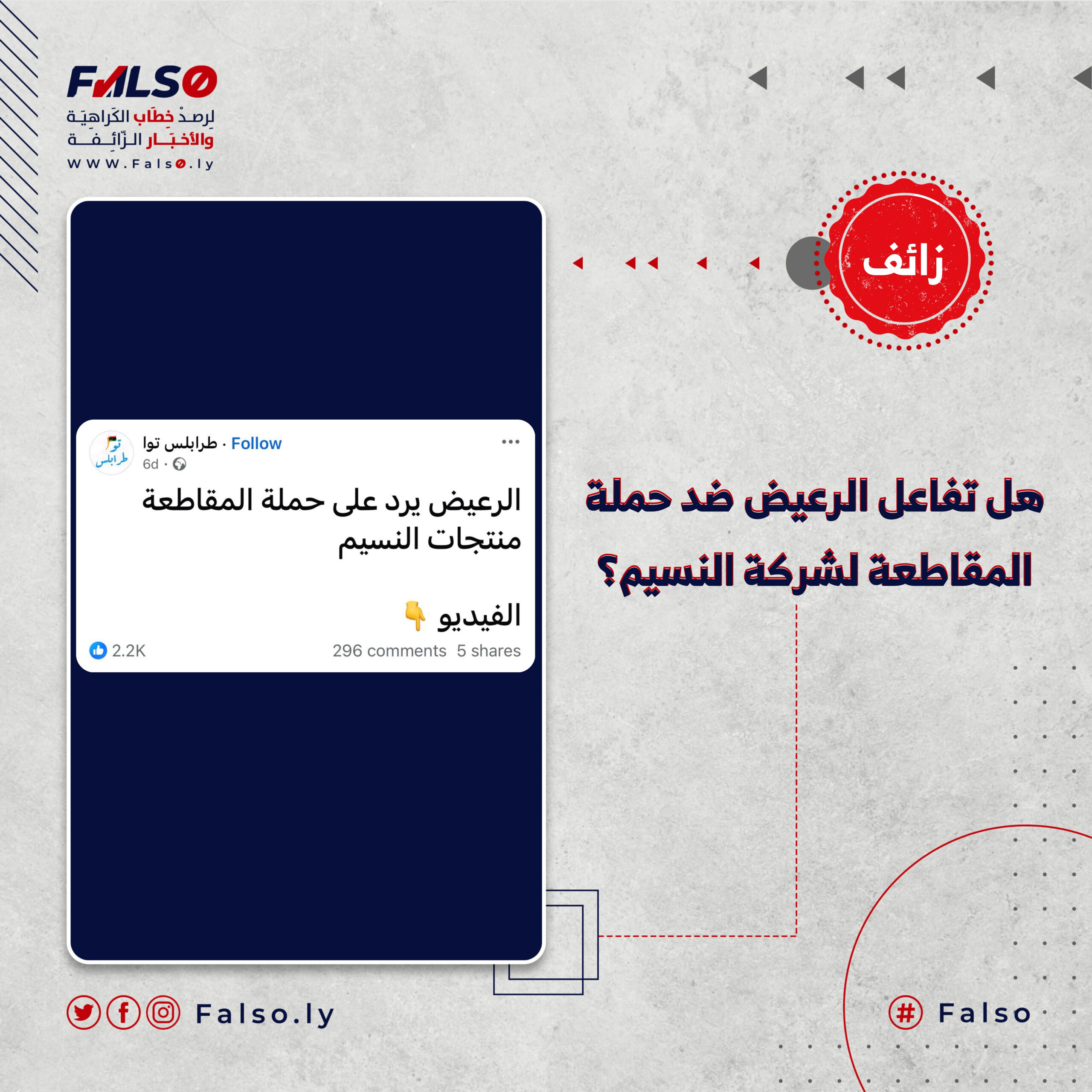 ادَّعت صفحات على الفيسبوك أن رئيس مجلس الإدارة لشركة النسيم للصناعات الغذائية قد ردَّ على حملة المقاطعة التي أُعلنت مؤخرًا ضد منتجات شركتِه، مرفقًا مع المنشور فيديو للرعيض يتحدث فيه عن أن السبَّ والشتم تجاه شركته النسيم ما هو إلا دعاية مجانية للشركة.