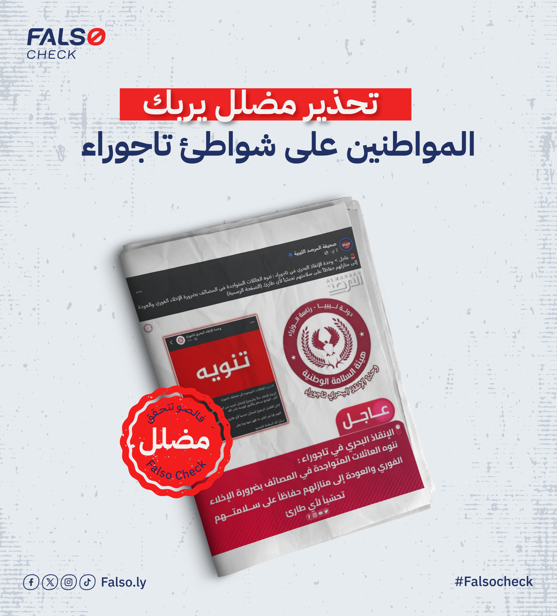 تداولت بعض وسائل الإعلام المحلية ادعاءً يفيد بأن وحدة الإنقاذ البحري في تاجوراء أصدرت تحذيرًا عاجلًا للمصطافين بضرورة الإخلاء الفوري للمصائف، تحسبًا لأي طارئ محتمل.