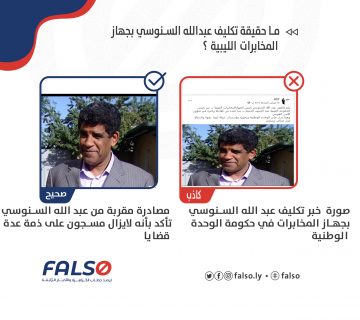 ⚠ ما حقيقة تكليف عبدالله السنوسي بجهاز المخابرات الليبية؟20 فبراير، 2021⚠ ما حقيقة تكليف عبدالله السنوسي بجهاز المخابرات الليبية؟ نشرت صفحة تعرف باسم (007) عبر الفيسبوك بتاريخ 15 فبراير ... المزيد