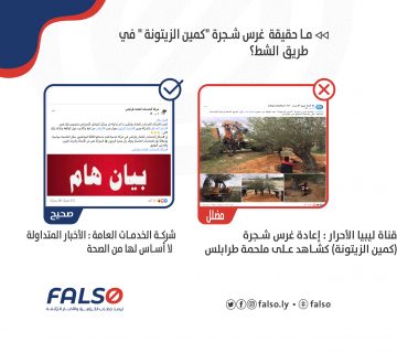 ما حقيقة غرس شجرة “كمين الزيتونة ” في طريق الشط؟!15 فبراير، 2021ما حقيقة غرس شجرة “كمين الزيتونة ” في طريق الشط؟! نشرت قناة ليبيا الأحرار عبر صفحتها في الفيسبوك بتاريخ ... المزيد
