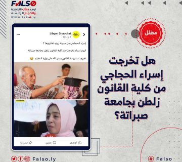 هل تخرجت إسراء الحجاجي من كلية القانون زلطن بجامعة صبراتة؟M.alnajem20 يوليو، 2022نشرت صفحة بإسم ( Libyan Snapchat ) وهي صفحة تم إنشاؤها في 5 يناير 2017 ويُتابعها أكثر من مليون متابع، ... المزيد