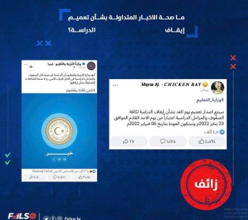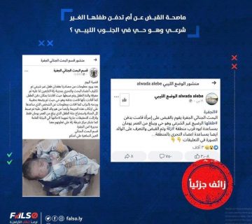 ما صحة القبض على أم تدفن طفلها الغير شرعي وهو حي في الجنوب الليبي ؟!M.alnajem25 يناير، 2022تناقلت بعض صفحات التواصل الاجتماعي يوم الأمس خبر مفاده قيام أم من منطقة زلة التابعة لبلدية الجفرة في الجنوب الليبي، ... المزيد