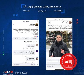 ما صحة مقتل طالب ليبي في أوكرانيا أثر القصف الروسي هناك!M.alnajem8 مارس، 2022تناقلت العديد من الصفحات عبر موقع فيسبوك ادعاء زائف مفاده مقتل طالب ليبي في دولة أوكرانيا نتيجة قصف صاروخي نفذه ... المزيد