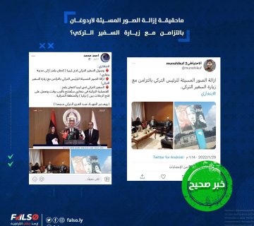 ما حقيقة إزالة الصور المسيئة لاردوغان بالتزامن مع زيارة سفيره؟M.alnajem3 فبراير، 2022الخبر صحيح والصورة منتشرة في عدة شوارع بمدينة بنغازي وتمت إزالة هذه الصورة قبيل زيارة السفير التركي لمدينة بنغازي. انتشر ... المزيد